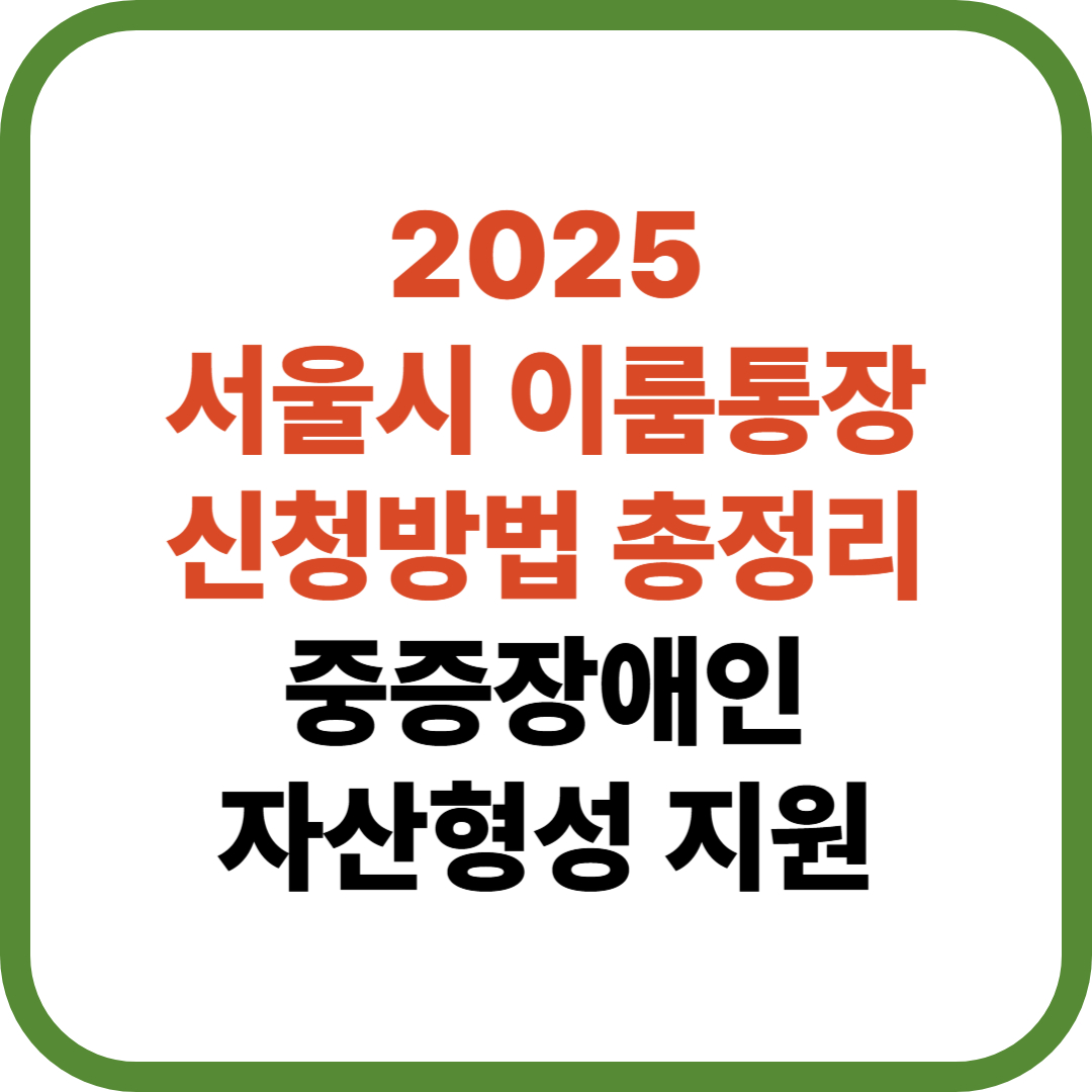 2025년에는 총 250명의 신규 가입자를 모집하며, 선정 시 월 10만 원 저축만으로 정부와 서울시가 최대 30만 원을 매칭해줍니다. 장애인 가정의 자립과 미래설계를 돕기 위한 이 정책, 지금부터 이룸통장의 자격 요건, 혜택, 신청방법까지 자세히 알아보겠습니다.